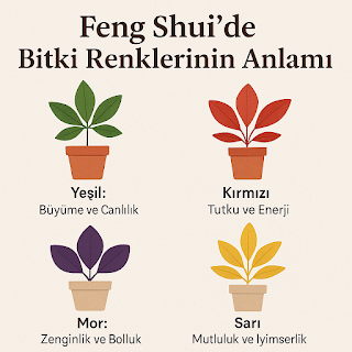 Bitkilerin yalnızca türü değil, renkleri de Feng Shui’ye göre farklı enerjiler taşır. Her renk beş element sistemine karşılık gelir ve uygun alanda kullanıldığında enerji akışını dengeleyebilir.